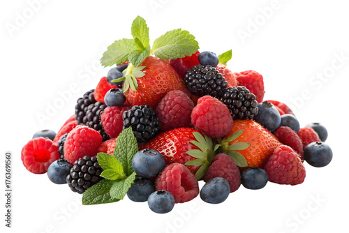 Fresh mixed berries isolated on transparent background, healthy eating concept