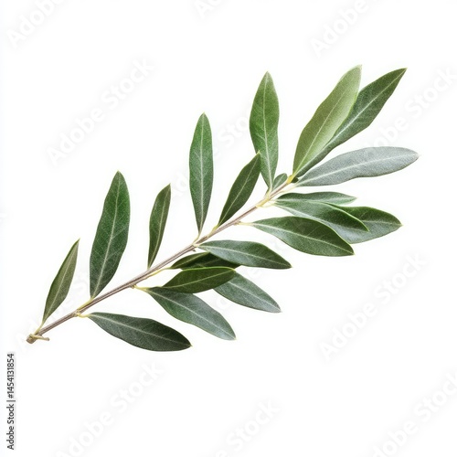 Fresh olive branch with vibrant green leaves. Close-up view of a healthy, flourishing olive branch, featuring numerous oval-shaped, glossy leaves