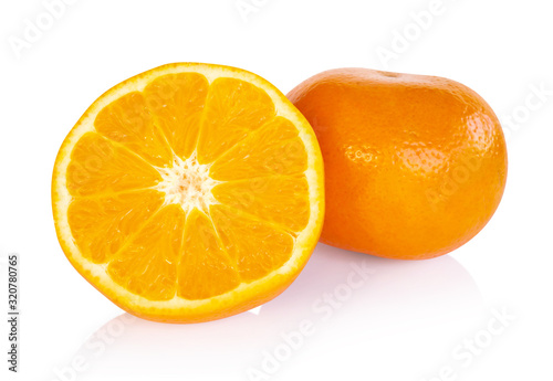 Fresh orange fruit slice isolated on white background