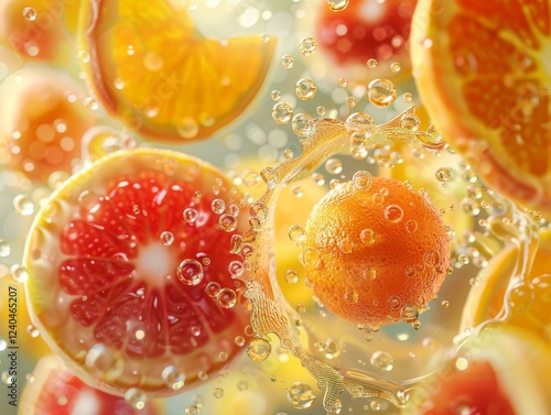 Fresh oranges grapefruit slices juice splash citrus fruit vitamins healthy drink summer refreshment natural vibrant.