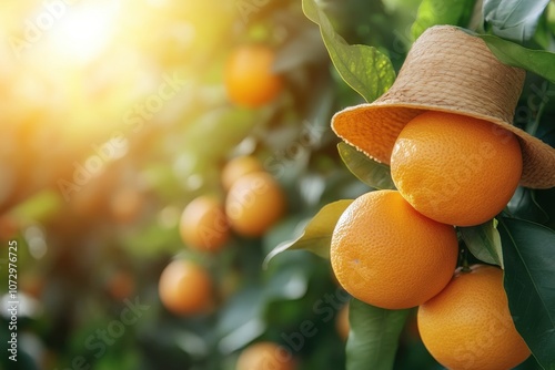 Fresh Oranges in Sunlit Orchard with Lush Foliage
