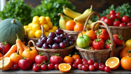 Fresh Organic Fruits and Vegetables in Rustic Basket Display