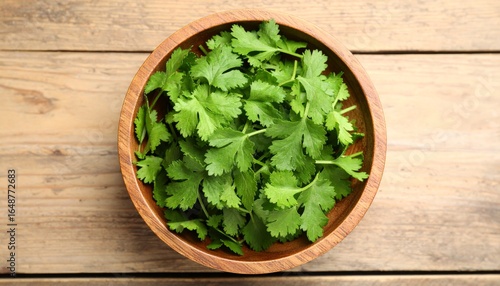 Fresh organic green salad with parsley, spinach, and other vegetables in a wooden bowl on a white isolated background