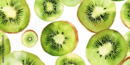 Fresh Organic Kiwi Fruit Background, Horizontal Watercolor Illustration. Healthy Vegetarian Diet. Ai Generated Soft Colored Watercolor Illustration with Delicious Juicy Kiwi Fruit.