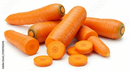 Fresh, organic orange carrots, a healthy root vegetable, isolated on white