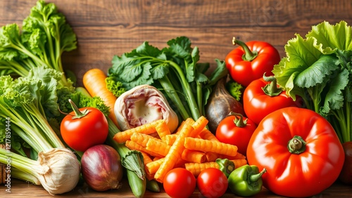 Fresh Organic Vegetables Harvest on Rustic Wooden Background
