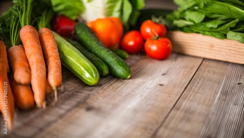 Fresh organic vegetables rustic wooden table h