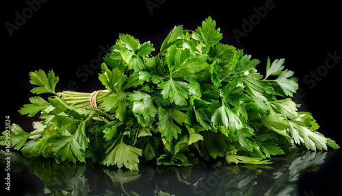 fresh parsley bunch bright green vibrant isolated on black