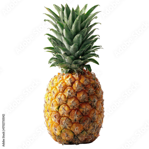 Fresh pineapple, vibrant yellow-gold rind, green crown