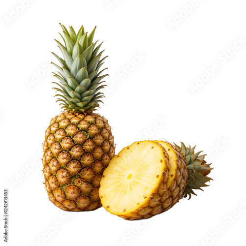 Fresh Pineapple Whole and Sliced – Isolated on White Background