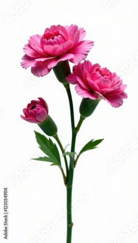 Fresh pink carnation flowers isolated on white background, white, bouquet