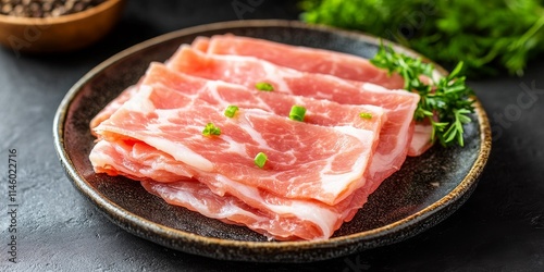 Fresh pork skin displayed on a plate. This fresh pork skin serves as a popular raw ingredient in culinary dishes, highlighting its significance in food preparation concepts.