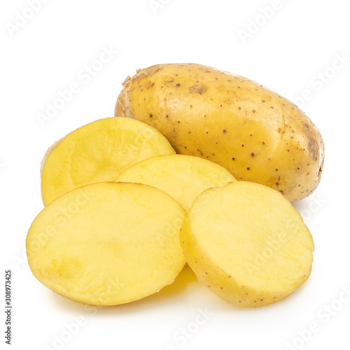 Fresh potato or potato slices (Solanum tuberosum) isolated on white background