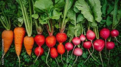 Fresh Produce Display Vibrant Vegetables with Dew Drops for Healthy Eating and Culinary Creati