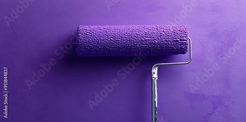 Fresh purple paint on wall with roller