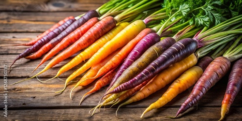 Fresh Rainbow Carrots on Wooden Surface for Culinary Inspiration