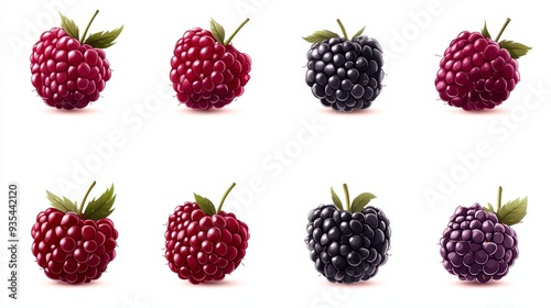 Fresh Raspberries and Blackberries Set Isolated on White Background