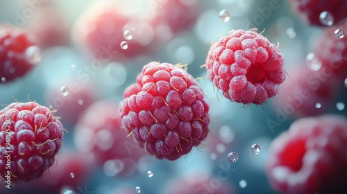 Fresh Raspberries with Water Drops Summer Fruit Macro Photography