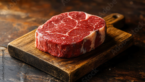 Fresh raw beef steak meat on wooden cutting board