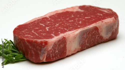 Fresh Raw Beef Steak on White Background with Sprig of Rosemary for Culinary and Food Photography