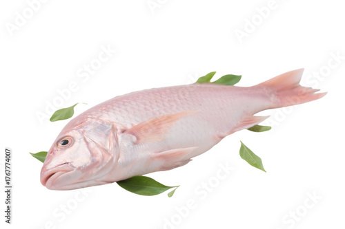 Fresh raw fish with green leaves for cooking and healthy eating