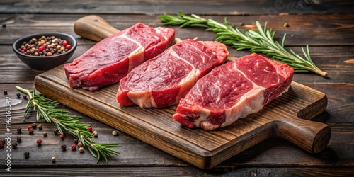 Fresh raw Prime Black Angus beef steaks on wooden board, natural, culinary, natural, culinary, ribeye, meat, gourmet
