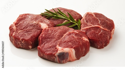 Fresh raw veal cheeks arranged with herbs ready for braising in gourmet culinary preparation