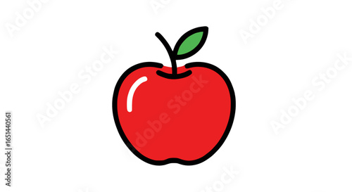 Fresh red apple with green leaf and glossy surface highlighting natural freshness