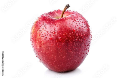 Fresh red apple with water droplets glistening on its surface, perfect for food and drink related images