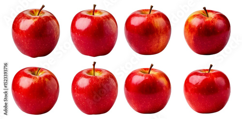 Fresh Red Apples Arranged in a Grid Pattern for Healthy Eating, Isolated on Transparent, white background