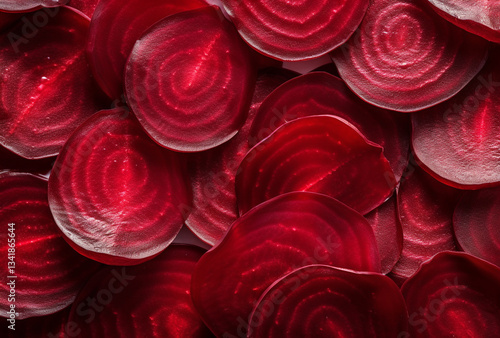 Fresh Red Beetroot Slices, Top View, Showing Their Natural Shine
