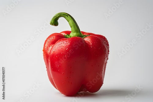 Fresh Red Bell Pepper with Water Droplets on White Background