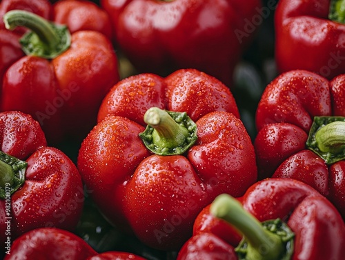 Fresh Red Bell Peppers in Closeup Shot - ai