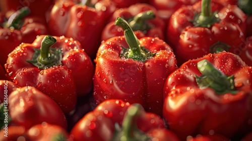 Fresh Red Bell Peppers with Dew Drops Vibrant Healthy and Ready for Culinary Creations