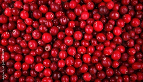 Fresh red cranberries arranged closely for harvest showcase in autumn season