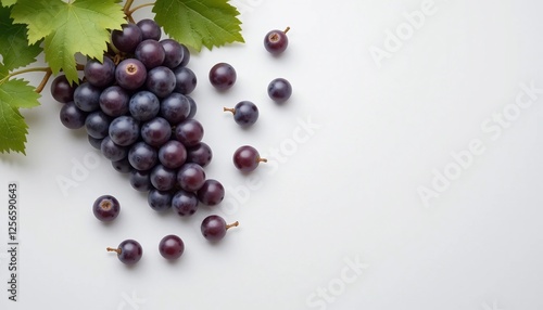 Fresh Red Grapes with Green Leaves on White Background Food Photography Bunch of Grapes Healthy