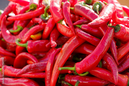Fresh Red Peppers Piled Together in Outdoor Market During Daytime