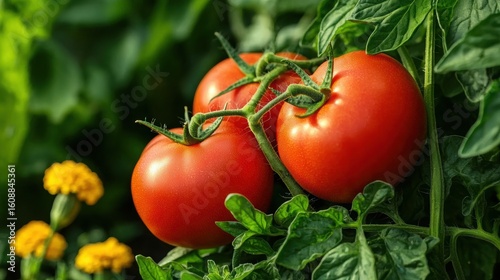 Fresh Red Tomatoes Growing on a Plant Surrounded by Green Foliage