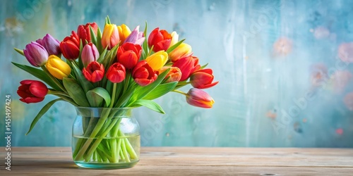 Fresh red tulips in a vase , floral arrangement, colorful flowers