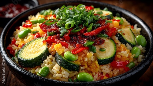 Fresh rice with cucumber slices high resolution picture