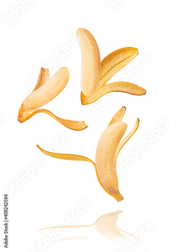Fresh ripe baby bananas falling in the air
