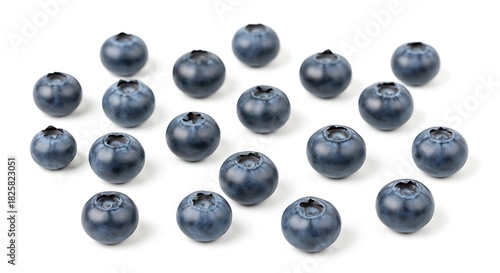 Fresh ripe blueberries scattered, healthy superfood fruit isolated on white.