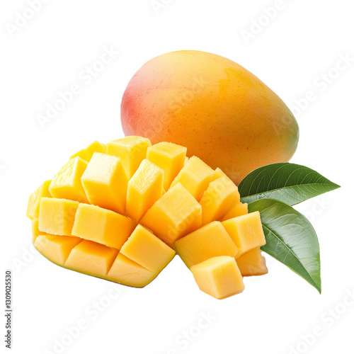 Fresh Ripe Mango with Cubed Slices on Transparent Background