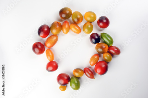 Fresh ripe mixed tomato verity assorted color on white background