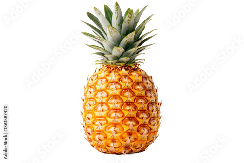 Fresh ripe pineapple with vibrant green leaves, cut out