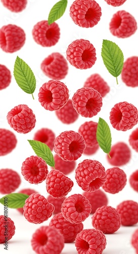 Fresh Ripe Raspberries Delightful Pattern Vibrant Red Fruit Background with Green Leaves for Healthy Eating and Summer Harvest