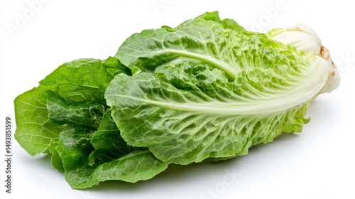 Fresh romaine lettuce isolated on white background food photography studio setting close-up view for culinary use