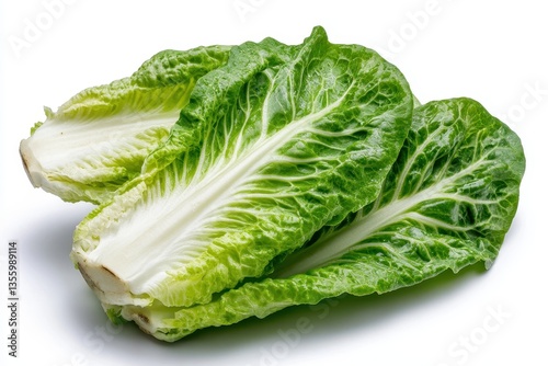 Fresh Romaine Lettuce Leaves Isolated on White Background for Healthy Eating and Cooking