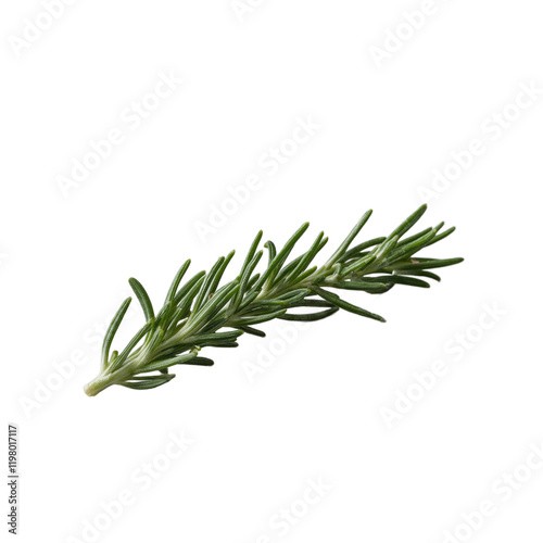 Fresh rosemary sprig on gray background detailed needles