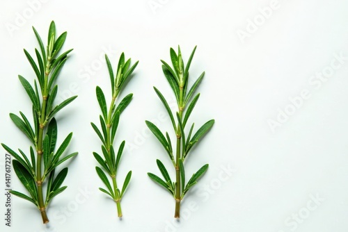 Fresh rosemary sprigs and leaves on a white background, green, cooking